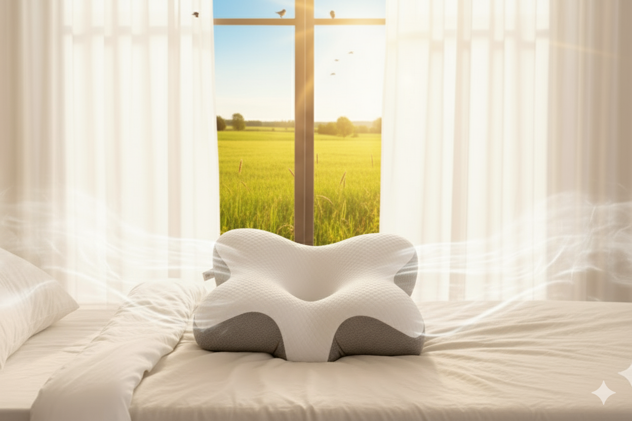 The Drema™ Ergonomic Butterfly Pillow is scientifically designed with contoured wings and a central hollow to keep your head, neck, and spine naturally aligned. This reduces stiffness, relieves pressure points, and promotes deeper, pain-free sleep.